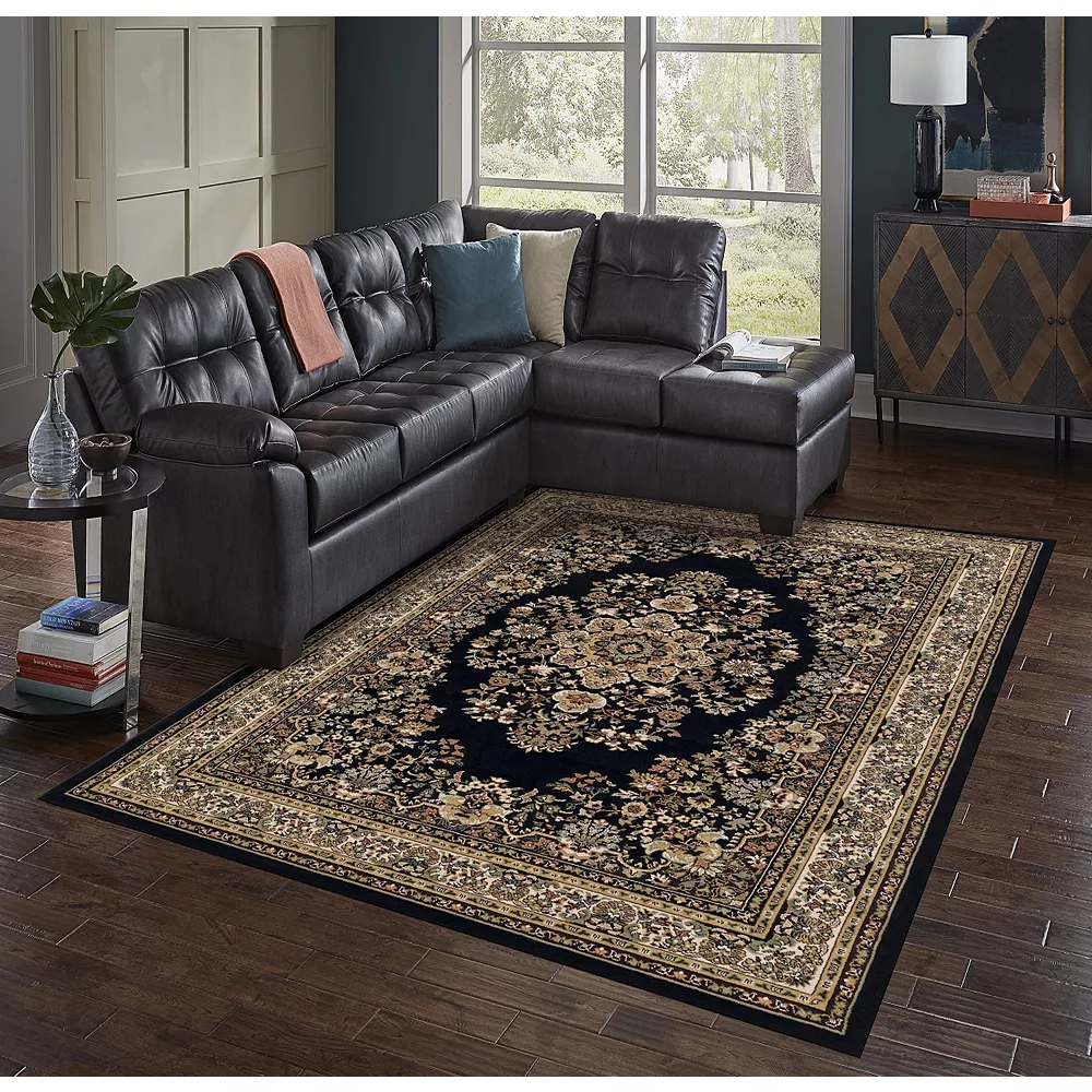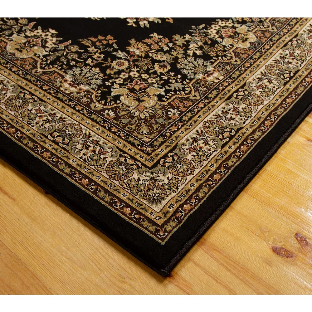 Deep and enigmatic, the L’Baiet Madeleine Black Oriental Rug is a great addition to all aspects of the home and especially suited for anyone looking for a way to add a great accent of depth into a room. The fantastic combination of color and pattern will give life to a room with a piece that offers distinct personality and adds character to your space. Enhancing its durability and longevity, this stylish area rug is constructed of polypropylene with a jute backing. It’s designed to take on the occasional spill, and is easily cleaned with a light vacuuming. For those unexpected spills, spot clean with light detergent or have it professionally removed. Power-loomed from a blend of polypropylene ensuring durability for years to come. Generous 0.31 inch pile height provides ample comfort yet seamless for placement underneath furniture. Machine made to withstand high-traffic areas with virtually no shedding. Recommended for residential indoor use in any room of your home. Vacuum when needed. If spills occur, spot clean with mild detergent. Made in Egypt. Manufacturer limited 90 Days warranty covers any defects in material or workmanship under normal use during the warranty period. Guarantee does not provide replacement necessitated by normal wear-and-tear, misuse or accidental damage.
